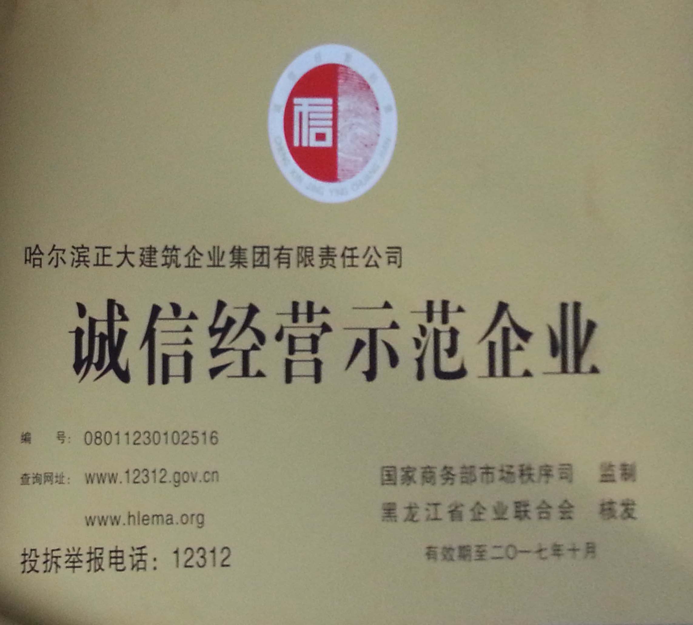 公司成立至今,先后被評為全國優秀施工企業、全國用戶滿意施工企業,全國首批建筑業誠信施工企業,全國“安康杯”競賽優勝企業,全國工程建設質量管理優秀企業、中國建設系統企業信用信譽AAA級單位,并多次榮獲省、市“先進單位”、“優秀單位”、“重合同守信用單位”、“黑龍江省優秀施工企業”、“黑龍江省用戶滿意施工企業”等光榮稱號。并連續獲得哈爾濱市質量管理先進單位、黑龍江省質量管理先進企業、黑龍江省質量管理獎、黑龍江省“安康杯”優勝企業等榮譽。并在建筑施工現場環保管理上創造了一項“中國企業新記錄”。